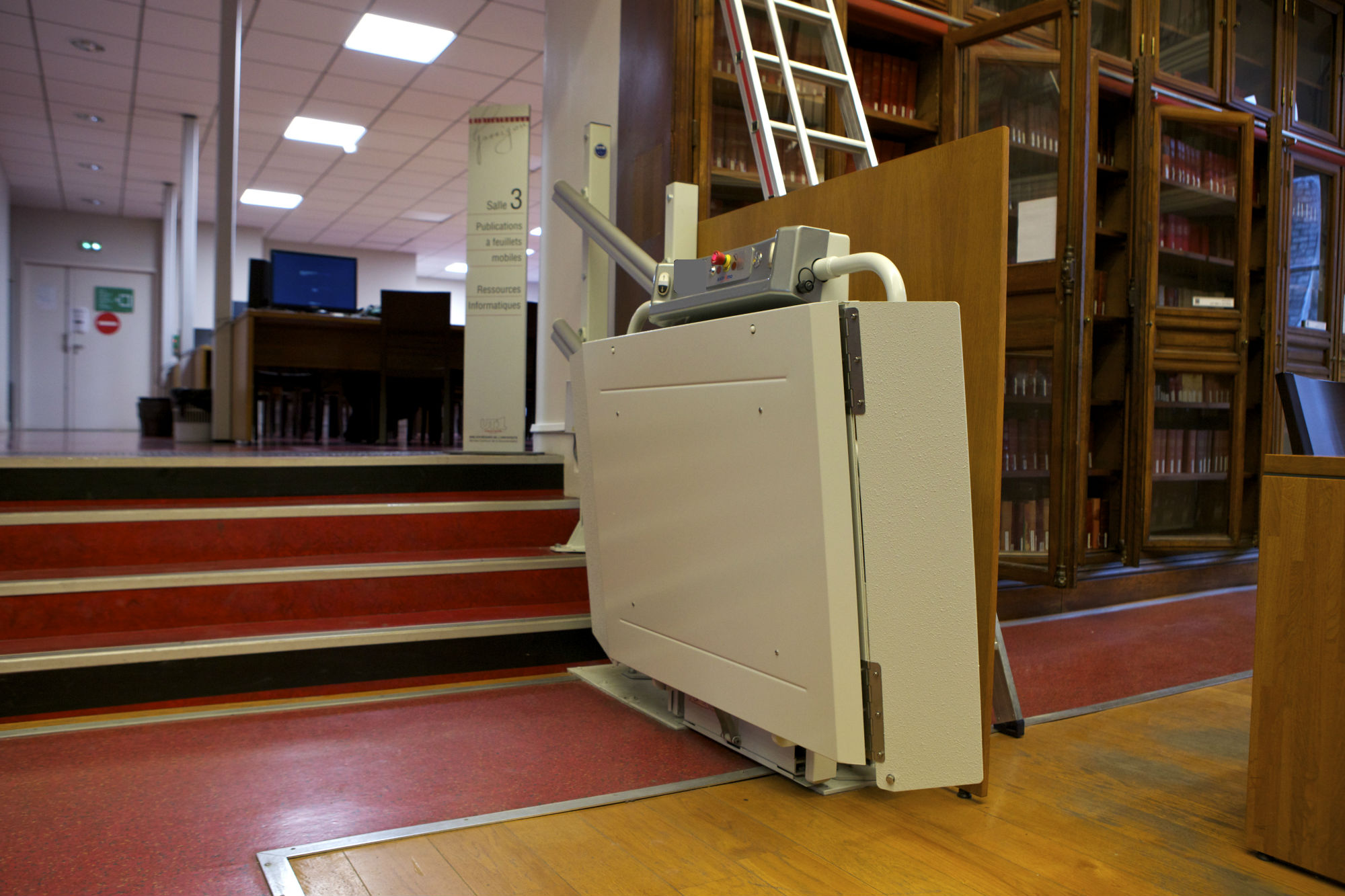 Suite au lancement de l'appel d'offres concernant les travaux de rénovation des ascenseurs et appareils élévateurs de l'Université Toulouse 1 Capitole, Dip Mobilité s'est chargé de l'installation de deux plateformes monte-escalier de l'Université.