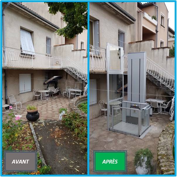 Dip Ascenseurs, votre professionnel de la conception et de la pose d'ascenseurs dans toute la Haute-Garonne et le Tarn, vous présente un EPMR (Élévateur pour Personne à Mobilité Réduite) créé et installé à BRUGUIERES en région toulousaine (31).